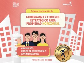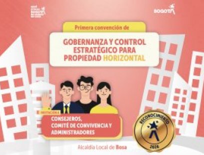 La Alcaldía Local de Bosa invita a participar en la Primera Convención de Gobernanza y Control Estratégico para Propiedad Horizontal, un espacio de formación y fortalecimiento dirigido a actores clave de la propiedad horizontal en la localidad. Dirigido a Consejeros Integrantes de comités de convivencia Administradores de propiedad horizontal ¿Qué encontrarás? Un espacio académico orientado al fortalecimiento de la gobernanza, el control estratégico y la gestión eficiente en la propiedad horizontal. Inscripciones https://docs.google.com/forms/d/e/1FAIpQLSdE5vKNamVxdWZ_5dvyM1pAIDX74IxLtYEh5p3dQYimNuobFg/viewform
