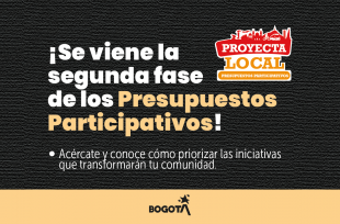 En #Bogotá arranca la segunda fase de los Presupuestos Participativos! Es el momento de unirte y ayudar a decidir las iniciativas que harán crecer tu comunidad. Miércoles 17 de septiembre 5:00 p.m. Conéctate de manera virtual Ingresa aquí y participa. https://acortar.link/vuwdHg