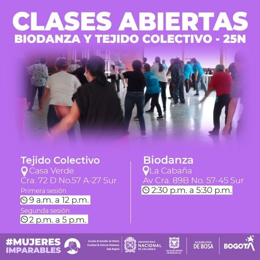 #MujeresImparables de #Bosa, las esperamos en las clases de Biodanza y Tejido Colectivo este #25N, A través de la música trabajaremos las emociones y fortaleceremos una vida libre de violencia.