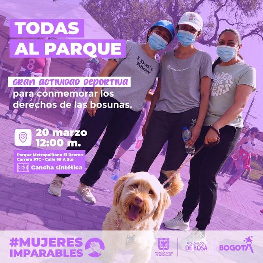 Actívate por los derechos de las mujeres. Invitamos a las #MujeresImparables de Bosa a una gran jornada de actividad física al parque. Sólo trae la mejor actitud y siéntete libre de ejercitarte