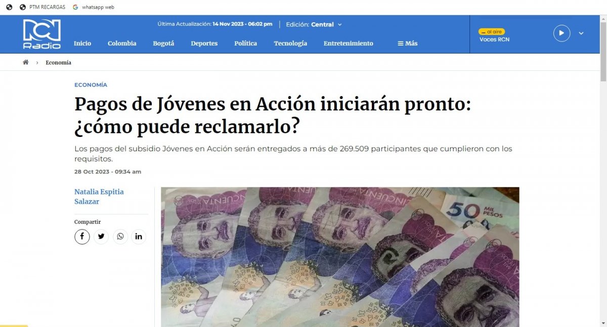 El martes 31 de octubre comienzan nuevamente los pagos del subsidio 'Jóvenes en Acción; el dinero será entregado a más de 269.509 participantes que cumplieron con los requisitos.