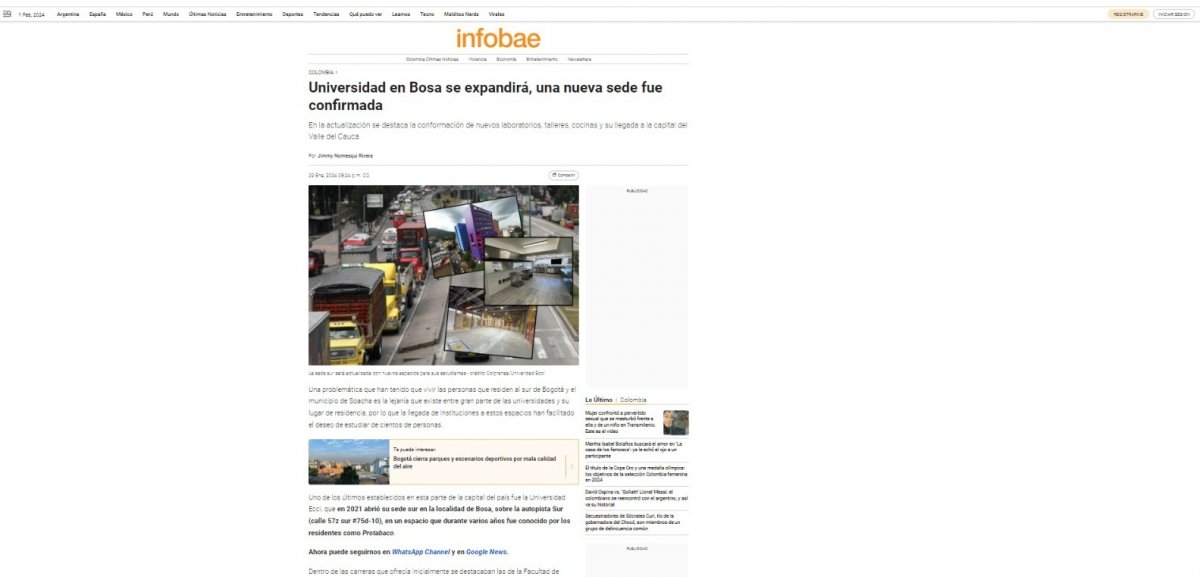 Uno de los últimos establecidos en esta parte de la capital del país fue la Universidad Ecci, que en 2021 abrió su sede sur en la localidad de Bosa, sobre la autopista Sur (calle 57z sur #75d-10), en un espacio que durante varios años fue conocido por los residentes como Protabaco.