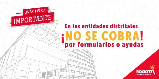 De igual manera recuerde que la Alcaldía Local de Bosa y demás entidades distritales, no cobran por tramites o servicios. No se deje engañar y denuncie a quien pretenda hacer negocio con formularios de registro o promesas de acceso a servicios.