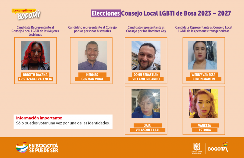 Bogotá 14 de diciembre de 2023. Avanza el proceso eleccionario para elegir a las y los nuevos integrantes del Consejo Local LGBTI de Bosa, lunes de 18 de diciembre en la jornada que se llevará a cabo en la Casa de la Participación de Bosa Cra 80 K # 61 - 28 Sur de 9:00 a.m. a 4:00 p.m.