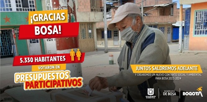 La localidad de Bosa hizo parte del proceso histórico de Presupuestos Participativos, en el que 51.789 bogotanos votaron en toda la ciudad, en un proceso no electoral, para definir la inversión de la plata de sus impuestos.