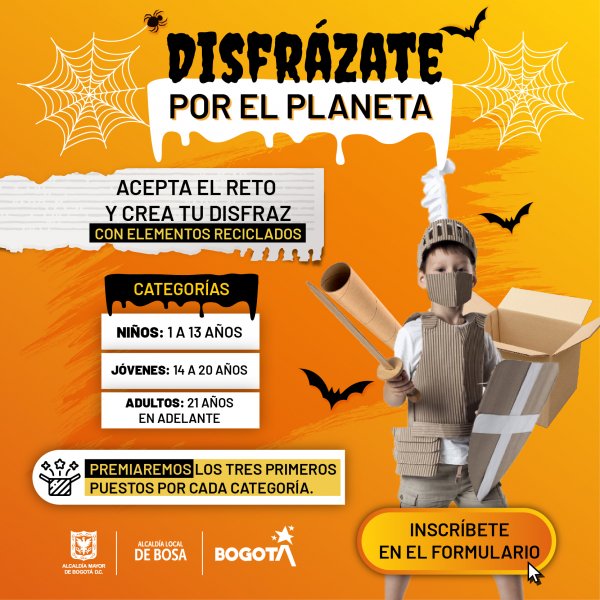 Bogotá, 19 de octubre 2021 | La Alcaldía Local de Bosa habilitó el concurso Disfrázate por el Planeta que contará con 45 premios y 3 categorías de participación.