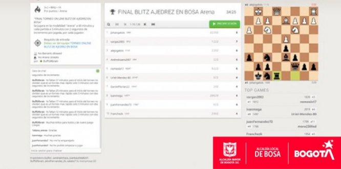 Bogotá 07 febrero 2021. La Alcaldía Local de Bosa llevó a cabo el sábado 6 y domingo 7 de febrero el primer TORNEO ONLINE BLITZ DE AJEDREZ, una actividad virtual de carácter deportivo que reunió a niños, niñas, adolescentes y adultos de diferentes barrios de Bosa.