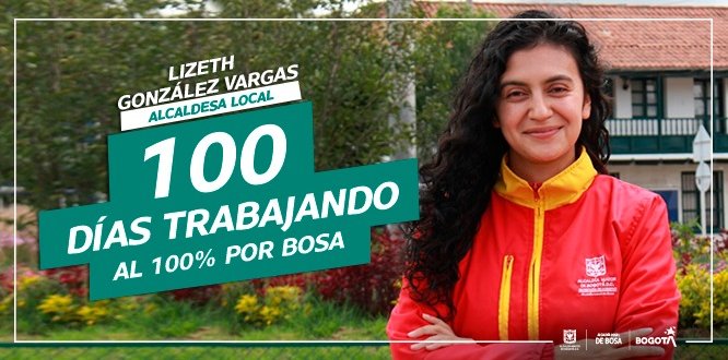 El pasado 17 de abril, la Alcaldesa de Bogotá, Claudia López posesionó a Lizeth González Vargas como Alcaldesa Local de Bosa después de surtir el proceso meritocrático liderado por el Secretario Distrital de Gobierno, Luis Ernesto Gómez. Hoy, en el marco de los primeros 100 días de gobierno, González Vargas, entrega un balance de las acciones y gestiones adelantadas para promover el desarrollo de la localidad y el bienestar de todos sus habitantes, trabajando con transparencia y diálogo, en respuesta a la confianza ciudadana.