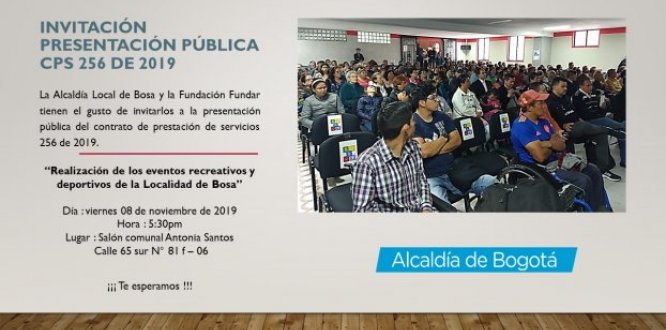 #Invitación a la presentación pública del contrato 256 de 2019 - “Realización de los eventos recreativos y deportivos de la localidad de #Bosa”